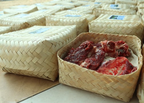 Proses penyembelihan, pengemasan dan distribusi hewan qurban menggunakan kemasan organik ramah lingkungan sehingga limbah yang dihasilkan dari qurban di syuhada 0%.